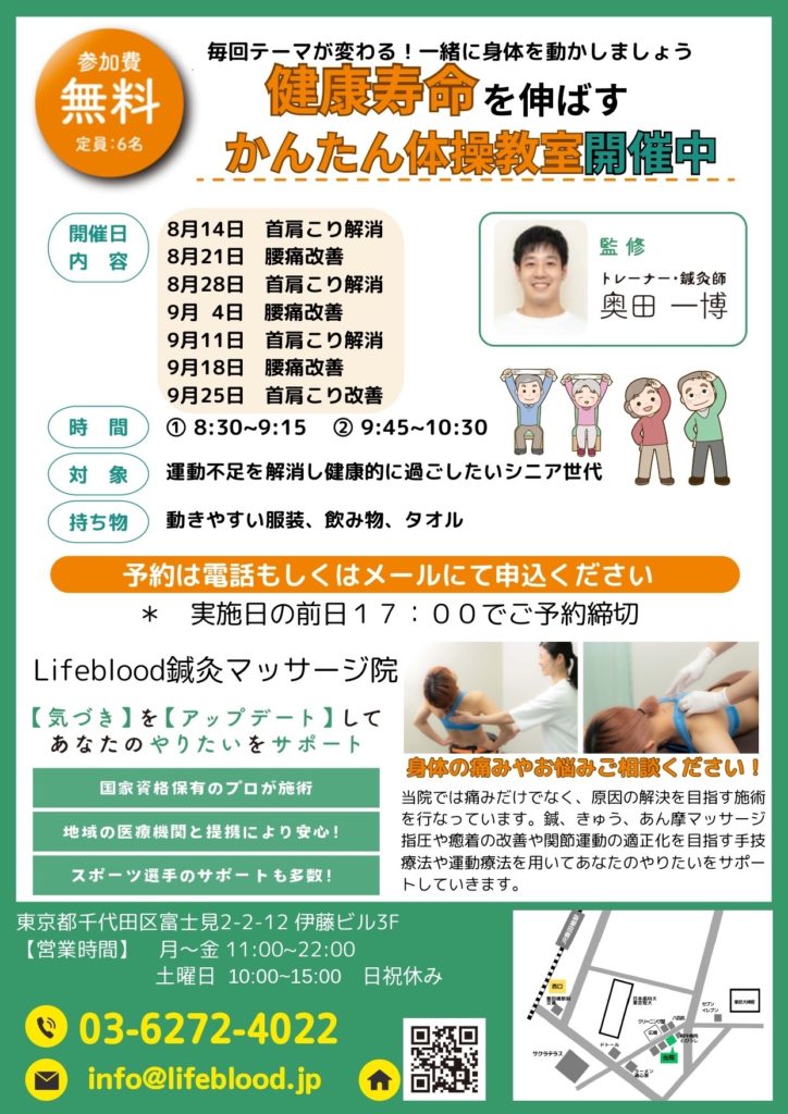 毎週水曜日の午前に行なっている、Lifebloodの体操教室。